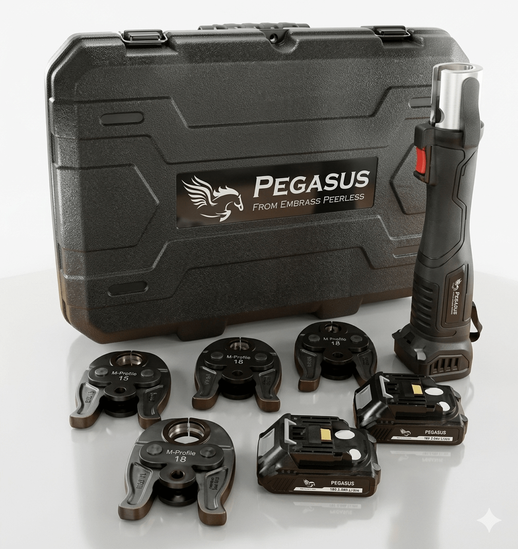 The Pegasus PressFit Gun is a professional-grade pressing solution designed for merchants supplying today’s press-fit plumbing systems. Compatible with copper, PEX, multilayer composite and stainless steel pipe, it delivers fast, consistent press connections in just 2 seconds. Supplied as a complete, ready-to-sell kit with 15mm–35mm M-Profile jaws, batteries, charger and, carry strap & carry case, it offers strong counter appeal and broad system compatibility for trade customers.